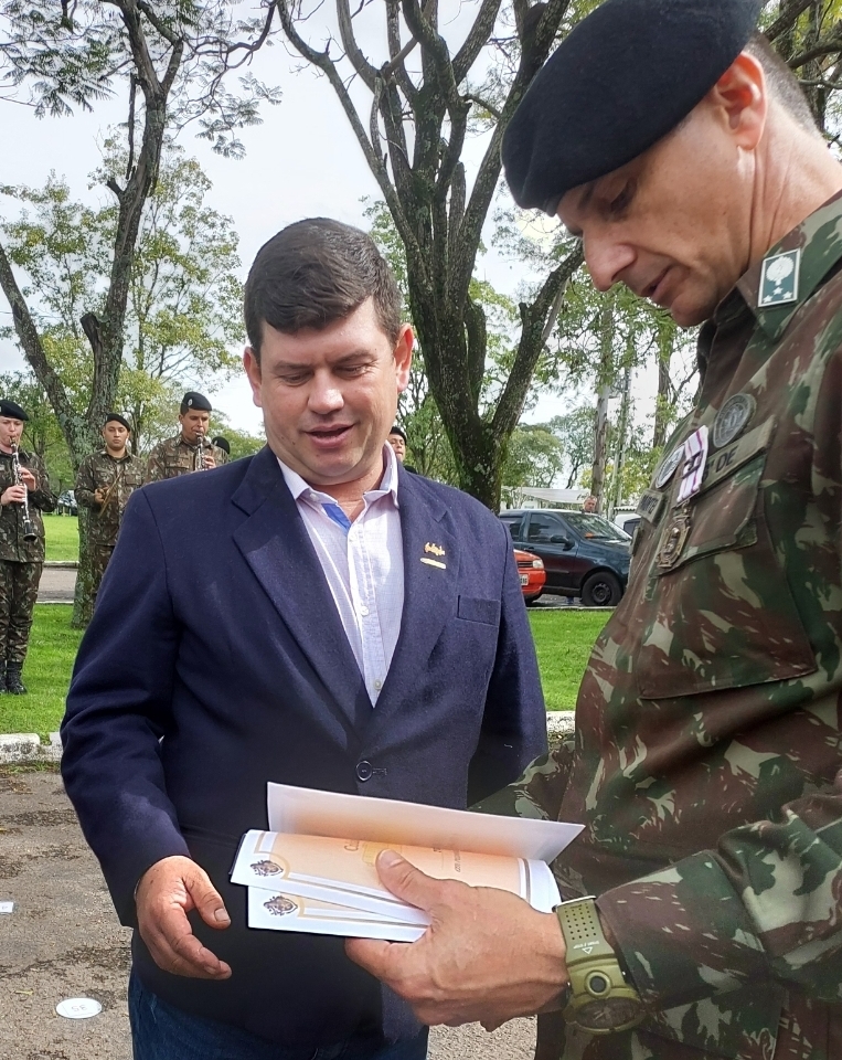 O Presidente Gustavo agradece, em nome de toda à diretoria, o gesto do comandante e do Exército em reconhecer o valor da Associação dos Arrozeiros de Alegrete junto à comunidade.